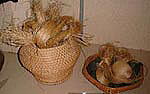 | @原料糸の製造 A図案の作成 B絣結び C染色 D製織 E洗濯の六つの分野からなる。 @原料の製造 原料糸には経糸(たて糸).緯(よこ糸)がある。宮古産の苧麻(ちょま)から手紡ぎして、後に管巻で右撚りに撚って糸を作る。長さは鯨尺2丈=20尺=20×37、879p=757、58p(約7m)(曲尺5尋=20尺×1、25=25尺)で80本を一升(よみ)とする。これを苧綛(うかせ)という。 苧麻から糸紡ぎをする前に水にしばらく漬け、その後、アワビの貝殻で苧麻をカスを取り除くと、細かくさけてよい糸が出来る。 |