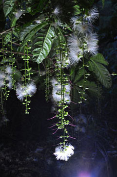 花は3センチ。白から赤にかわり多数の雄しべがあります。
